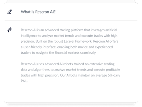 Behind every successful technology is a team of dedicated experts. Our team is a fusion of seasoned traders, data scientists, and technologists who bring a wealth of knowledge and experience. We work tirelessly to ensure Rescron AI remains a frontrunner in the field..